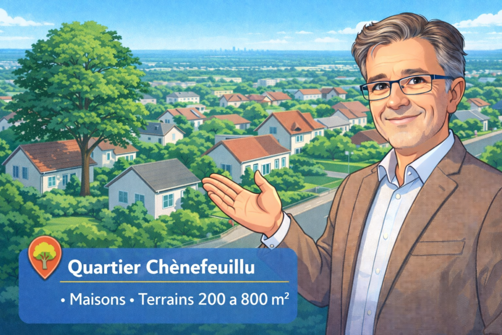 Le Chêne-Feuillu est très recherché : quartier majoritairement résidentiel, proche de la forêt, maisons souvent non mitoyennes, terrains généreux (200 à 700/800 m²).